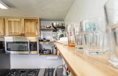 The original bungalow, single-family home has a great addition that we have created into the #1 place in Omaha to stay. It includes a fully stocked kitchen, smart TV, king-sized bed, all-in-one washer & dryer, and ambient lighting!