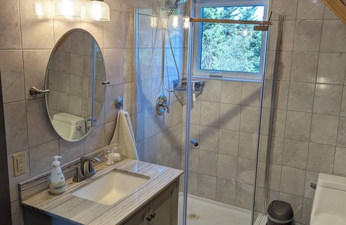 Two bedroom loft with a three piece bathroom. Air conditioned open concept full kitchen, living room and dining room. Large comfy couch, 55" smart TV with NETFLIX, Spotify, Prime Video, etc... One bedroom has a queen size bed, the other has 2 single beds. Loft has a spacious deck with ample outdoor living, equipped with BBQ and magnificent views of the ocean.