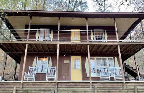 Enjoy our waterfront rustic cabin privately nestled less than a mile from downtown Ozark Arkansas. Also included is the use of The Shell Shack...a separate hangout and game room with its own deck overlooking the water. The Cabins at Turtle Cove are directly on the water that leads to the Arkansas River where you can enjoy fishing and water sports. Boat docks are available and are just a short drive away. Nearby activities and attractions include fishing, trail riding, hunting, wineries and vineyards, hiking, canoeing, and waterfalls. We are near the Mulberry River, mountain ATV/UTV trails, wineries, and Mount Magazine State Park.
