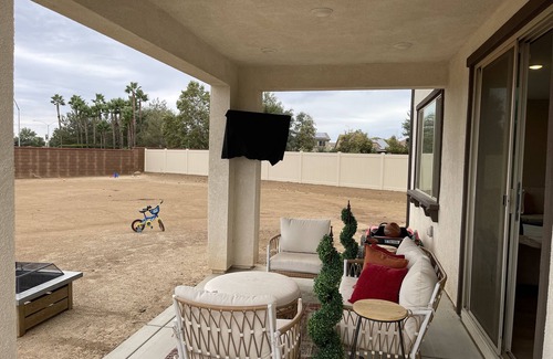 This 4 BR/3BA low desert getaway is 2,300 sq ft of pure bliss. There is an outdoor covered patio, dining area to eat, a BBQ Grill, and fire pit, a basketball court, and spacious yard for the kids to play in. Inside there’s a spacious loft, washer and dryer available. Free Wi-Fi, Netflix and Hulu, Firestick, & 4 spacious rooms . We are less than 10 minutes away the Cabazon Premium Outlet Mall. We are 45 minutes from Coachella, CA and Ontario, CA. 1 hour from San Diego, CA and Los Angeles, CA. We're an hour and a half away from San Diego Zoo, Safari Park, Legoland, Disneyland, Los Angeles, Universal Studios, Ontario Mills Mall, The Improv, Coachella Music Festival, and MORE!!!