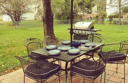This Cape-Cod style Guest House is within walking distance of restaurants and attractions. Enjoy the large fenced-in yard, have a barbecue, relax around the firepit. The birds will provide the music!!