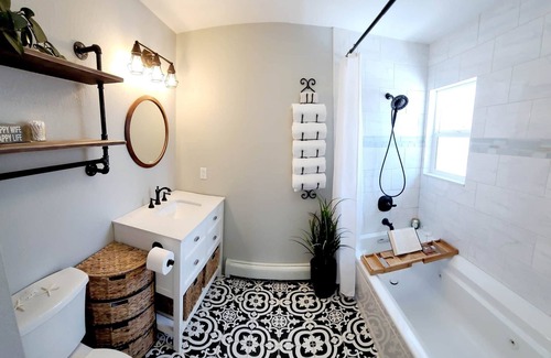 This 3rd story loft apartment is great for 2 to 3 people. 1 private bedroom and a sofa pull out. We have many extra amenities like Bluetooth, Alexa, bathroom speakers, extra long jetted bathtub and A/C! We love to travel and share our experiences in the home.