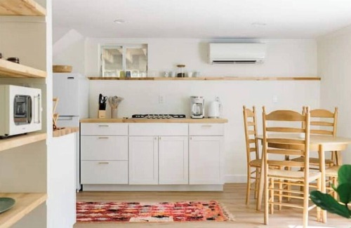 Have a large group and need more room? Our sister location, The Carriage House, can sleep up to 4 (a well designed studio with a queen bed, couch, and room for air mattress) and is situated next door to the Mac house, sharing all the perks of its location. Book both to accommodate a larger party!