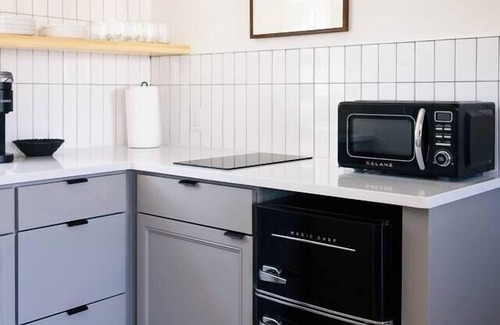 45% off monthly stays! This fully renovated boutique motel and tiny homes are conveniently located in Chambersburg, PA just off I81 and Rt 30. The details of this space will not disappoint for any length of stay! This unit includes a queen size bed, well stocked kitchenette and thoughtfully designed bathroom with a fully tiled shower and rainfall shower head to give a luxurious experience. Outdoor community space with fire pit, dining, and yard games coming soon. Included is an on site coin laundry for your convenience.