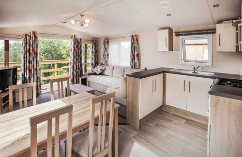 With stunning views through its large panoramic windows, and outlook front doors, and extra all-round insulation, the Maple is the ideal choice to make the most of the extended holiday season. Spacious rooms, contemporary furniture and extensive seating mean you can stretch out in comfort. A stylish and well-equipped domestic style kitchen includes plenty of cupboards, ample worktop space, a dedicated position for a microwave oven and MDF doors. Well-proportioned bedroom with a king-sized bed, a large shower room and generous storage throughout complete the inventory.