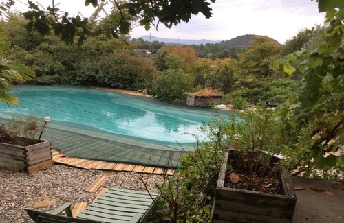 In the town of Paysac 10min Vans and 20min Joyeuse, the room is at the end of the house, overlooking the terrace and directly on the pool
