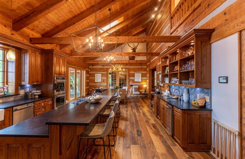 The property also features a detached guest quarters with 2 full upstairs suites, perfect for a large family or multiple families renting the estate together. Guests are encouraged to hike the manicured trails that cut through the forest surrounding the property. There is even a storybook tree house hidden in the woods for the kids. Call today to secure your family's ultimate mountain vacation and experience this magical property for yourself!
