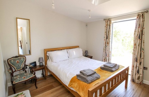 The cottage is single-story with two bedrooms, including a king-size and a double, as well as a bathroom with free standing bath, walk-in shower, basin and WC. There is an open-plan living space with kitchen, dining area and sitting area with woodburning stove, alongside a utility and external snug/diner. Heating is LPG gas and underfloor heating. The kitchen hosts electric oven and hob, microwave, fridge/freezer and dishwasher, as well as a washing machine in the utility. For entertainment, there is a Smart TV and WiFi. Fuel, power, bed linen and towels are all included. Outside there is ample off-road parking and a large, stunning rear garden with lawn, patio, orchard, meadows, pond, furniture and fire pit. Cats welcome. Smoking is not allowed in this property. Shop and pub 1.7 miles. Note: The pond is unfenced, please take care. Note: The owner regularly visits the property to tend to the garden. The Mission Room is a historic cottage perfect for two couples, with original cathedral features and a fairy-tale garden to explore. Note: Bookings can only begin on a Friday.