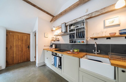 Sitting in the Toller Valley and within the courtyard of Lower Dairy House, The Neap has characterful features including exposed stonework, beams and high ceilings The accommodation has been thoughtfully designed and furnished to offer a comfortable setting which includes an open-plan sitting room with a wood burning stove, a separate dining area and a well-appointed kitchen. The attractive bedroom has a king-size bed, plenty of storage and french doors which offer pretty views of the hillside opposite and lead out to the quiet lane and parking area. A stylish bathroom with overhead shower, wash basin and WC completes the accommodation.