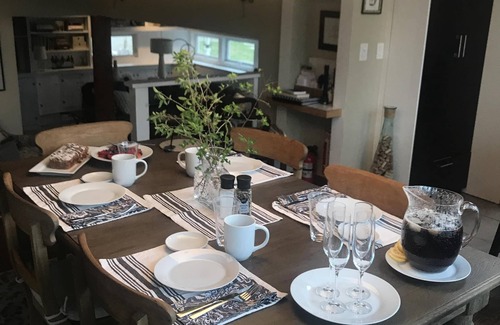 Our kitchen will be stocked with coffee, coffee filters, tea, olive oil, vinegar(s), spices. Foil, plastic wrap, baggies, trash bags are all provided.
