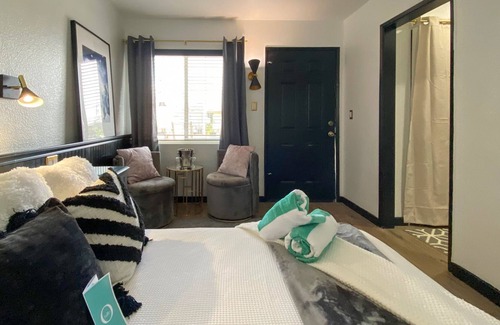 The Audrey Room is petite, monochromatic and minimalist, think Upper West Side studio meets Downtown Tokyo and probably isn’t for everyone, but certainly is for many. The room features a low-slung King platform bed, tufted swivel chairs, and best of all is haunted by Ms. Hepburn. What can we say… we love Audrey. Pool view, queen bed, 42″ flat screen with Amazon Prime, HBO, Hulu, Netflix, Roku, Showtime.