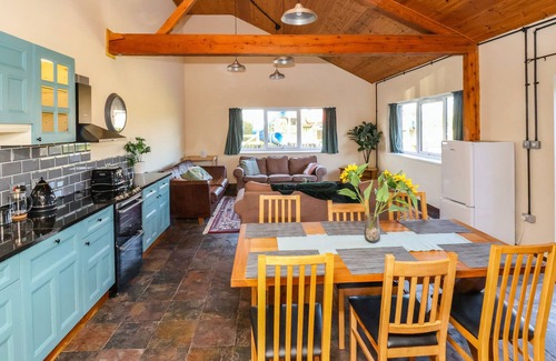 Amenities: Gas central heating. Electric oven and hob, microwave, fridge/freezer, washing machine, dishwasher. Smart TV, WiFi. Fuel and power inc. in rent. Bed linen and towels inc. in rent. Highchair, travel cot and stairgate available. Shared car park, offering ample parking. Private, enclosed patio with furniture, and shared access to lawned area with children's play area. Sorry, no pets. Sorry, no smoking. Shop 2.7 miles, pub 3.7 miles. Note: Sloped ceilings in the bedroom; please take care. Note: The sofa bed accommodates two guests, in total sleeping seven guests. Please note: this property can only accommodate 7 guests including children and infants.