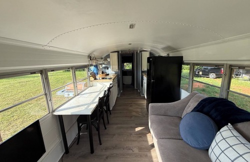 Nestled on a peaceful property just a 15-minute walk from stunning Lake Hartwell, this one-of-a-kind stay offers everything you need to unwind, recharge, and have some fun. Inside the bus, you’ll find a surprisingly spacious layout with one comfortable bedroom, a full bathroom, and a thoughtfully designed living space that combines rustic touches with modern amenities. Whether you're relaxing indoors or sipping a drink outside on your private porch, you'll feel right at home in this creative and inviting space.