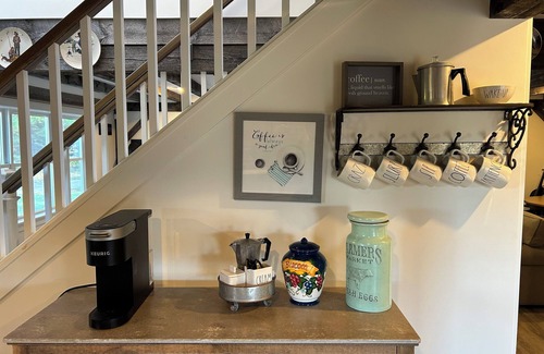 - Coffee bar with Keurig coffee maker