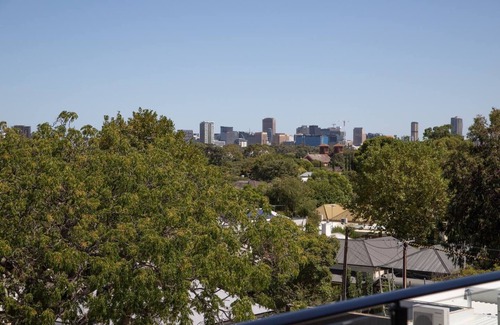 Located on the top floor of a three-storey complex, you’ll enjoy leafy, treetop views from this brand-new stay. the Adelaide CBD in one direction and the hills in the other. In the open-plan living area, a sofa, armchair and TV invite guests to settle in with a movie, while a dedicated workspace allows you to answer emails with ease.