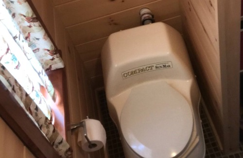 On-demand hot water heater, modern composting toilet, ceiling fan, WiFi, TV, DVD player.