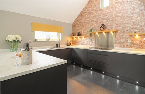 Amenities: Oil underfloor heating. Electric oven, induction hob, microwave, under-counter fridge with ice box, separate integrated fridge freezer, Nespresso coffee machine, dishwasher, washing machine, 3 x Smart TV and WiFi. Fuel and power inc. in rent. Bed linen and towels inc. in rent. Ample off-road parking. Two well-behaved pets welcome. Enclosed patio and decking with picnic bench, furniture and barbecue. Shared large meadow and lawn area. Sorry, no smoking. Shop and pub 1.9 miles. Note: Only children over 10 can use the twin bedroom due to the open-tread spiral staircase. Note: Due to the close proximity of livestock, dogs must be kept under strict control at all times. Note: The River Strine runs through the owners' land, children to be supervised