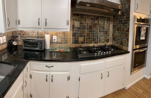 Our Home is a 3BR/2BA, just remodeled. Is very spacious and has a little over 2000 sq ft of living space. Open living areas and fully equipped kitchen, dishes, soap, condiments, towels are provided. Just bring your food and personal items. Washer and dryer available. There are 3 TVs. Wood and tile floors. Fireplace. Fenced backyard. A large parking area and garage.