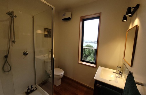 spectacular views. The perfect base for exploring all the peninsula has on offer; diverse wildlife, extensive walking tracks, a dedicated bike lane to the city, eco-tourism and great food. Wide steps lead you down from easy roadside parking to the balcony that surrounds this stunning one bedroom house. Enjoy the seamless indoor-outdoor connection from living space to balcony and take in the harbour view over a well maintained remnant of native bush, and adjacent farmland. You will feel like you are away from it all, while still being in easy access to the city, only17kms away. The house is well set up to allow simple food preparation, while being just a five minute drive to the amenities of the Portobello village. These include a well stocked corner store/deli, pub, café, restaurant, and Fish & Chip shop. We aim to provide a tranquil space for guests who appreciate the value of time out.