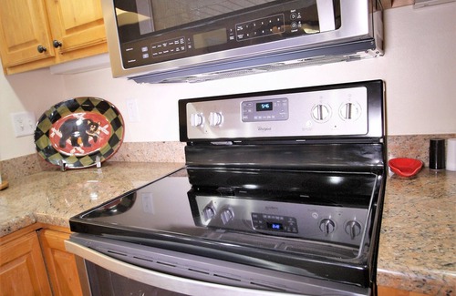 -Fully Equipped Kitchen with granite counters, crockpot, blender, pots and pans.