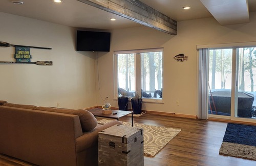 The lower level has heated floors in all rooms. The custom 4 place bunk bed hand made by "Papa" is a huge hit with the kids! They will also enjoy the game area, set up with some classic arcade games, including Goden Tee and an original Gottlieb pinball machine, sitting area, smart TV and beverage cooler.