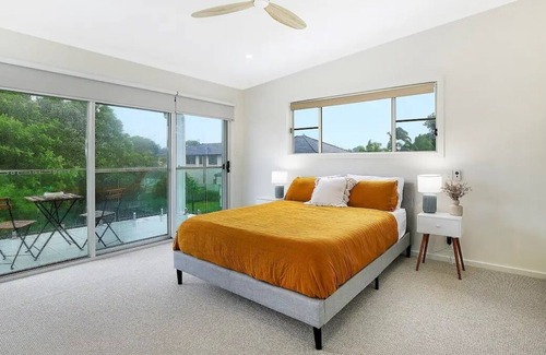 Brand new 3 bedroom townhouse with multiple living spaces, open plan kitchen and a deck for al fresco dining. 3 bedrooms, all with built in wardrobes, as well as 2.5 bathrooms make it comfortable for the entire family or a group of friends to stay. Drive right up to the property and utilise the double garage that leads directly into the home. The kid-friendly beach is an easy 6 minute walk. Spend the day relaxing on the shores with our beach tent or give our stand up paddle board a try.