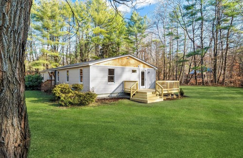 Enjoy peaceful views and modern luxury at this midcentury-inspired home on the Connecticut River backwater. Beautifully renovated, open and bright executive ranch. Outfitted chef's kitchen, mudroom with laundry. 3 bedrooms on the first floor; 2 bedrooms feature en-suite bathrooms. Full basement with all ages game room, movie nook, and additional bunk room. Minutes to Dartmouth College, Hanover, shopping, restaurants, grocery stores, 15 min to Dartmouth Skiway, and 1hr from major VT/NH ski resorts.
