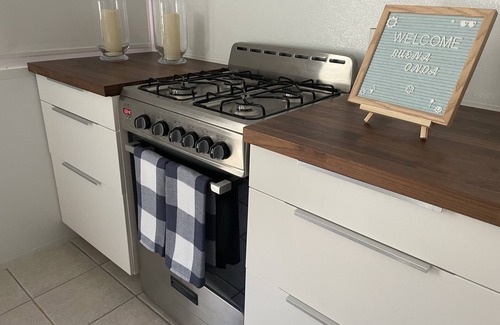 Vacation in paradise! Enjoy your stay in this lovely new Recreational Vehicle with extended A/C'd sunroom. This beautifully decorated R/V sleeps 6 in the two bedrooms with queen size beds. Modern full size kitchen fitted with flatware, utensils, cutlery, glasses, pots and pans, everything you will needed to create your fabulous meals. Outside you will find a BBQ area with a picnic table and four Adirondack chairs for relaxing in the sun or under the star lit sky.
