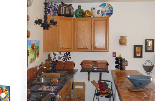 If you want A True Desert Experience, in quiet, private, stillness under a star splattered sky, and lots of desert wild life ...THIS birders paradise is it. Drive one mile down a primitive road to a majestic paradise just 4 miles from Continental Shopping Center. Hiking trails, biking, shopping, shows, art shops and much more are right near by. New walk-in shower. You'll have covered parking, a washer and dryer, a courtyard patio with a fountain. Pets may be acceptable by request and approval. Very uneven walking surfaces, you need to be sure footed. Original artwork and tile work done by the homeowner. A lovely setting.