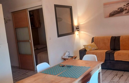 My home of 33m2 is close to the sea. A minute walk. You will appreciate my housing entirely done again for nine, for its situation, its sight on the sea, its terrace, and a parking in the residence. With complete equipment (Air conditioning, WIFI, oven, microwave, washing machine etc.). It also has a small room with a 140 bed and a sofa bed. A cellar available and a bike room. Visit the islands of Hyères (Porquerolles, Port-Cros) from Hyères