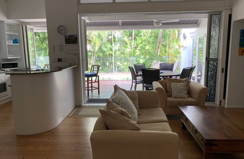 A short stroll only two minutes away is Four Mile Beach. A ten minute walk to the centre of Port Douglas for shopping or dinner. The villa has a private heated pool and has a large timber deck for relaxing on the lounges. The kitchen has folding windows, to serve direct from the kitchen.