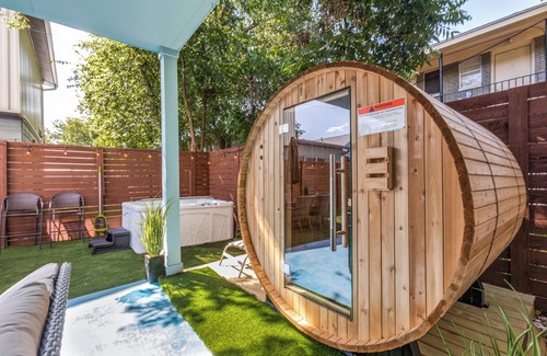 The Q - A modern Austin House w/7 Beds, 3 baths Hot Tub, Golf Sim + DT is located in Govalle. The Q - A modern Austin House w/7 Beds, 3 baths Hot Tub, Golf Sim + DT provides accommodation, featuring Security/Safety, Guest Services, Air Conditioner, among other amenities. This House features Security/Safety, Guest Services, Air Conditioner, to make your stay a comfortable one.