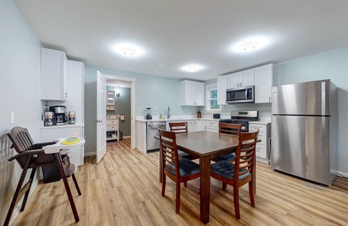 Kept warm thanks to the heat of the wood stove. The Quacker Jack offers quaint and cozy living quarters for you and your loved ones. Your time relaxing can be spent streaming shows in the spacious living room, or cooking in the well-equipped kitchen, complete with stainless steel appliances and ample meal prep space. Whether you're indulging in a home-cooked meal or takeout, the dining table is perfect for family-style meals.