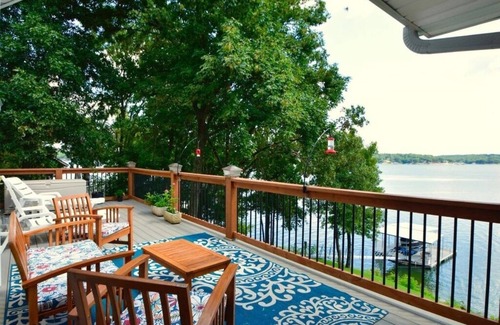 Our newly purchased lake home is a great place for family and friends to enjoy the best lake in Oklahoma! Whether you are planning a summer getaway or a winter holiday retreat, you’ll fall in love with this property and all it has to offer. Conveniently located on a peninsula in between Port Carlos and the mouth of Duck Creek, “The Reinholde” features two stories of living space with high ceilings and windows looking out onto the lake!