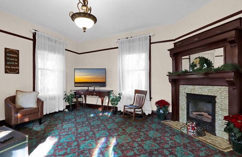 Step back in time as you enter across the relaxing, open front porch. The grand dining room can be closed off from the living room with the original pocket doors. In the kitchen, guests will find a well-stocked area with new refrigerator, oven and cooktop, microwave oven, Keurig coffee maker, and dishwasher. A laundry room is just off the kitchen with an available washer and dryer. One of our favorite rooms is the ski room. We've used antique ski poles as curtain rods and over the queen bed are a pair of wooden skis that were discovered in this home when we bought it. Come stay with us in the winter and great skiing and tubing at Snow Trails is about 30 minutes away.