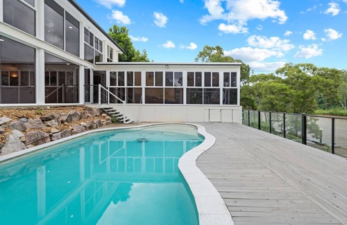 Indulge in a luxurious riverside escape at this stunning 5BR home, where panoramic river views and resort-style living await. This exquisitely renovated residence offers a symphony of light, space, and water—floor-to-ceiling windows unveil ever-changing river vistas.