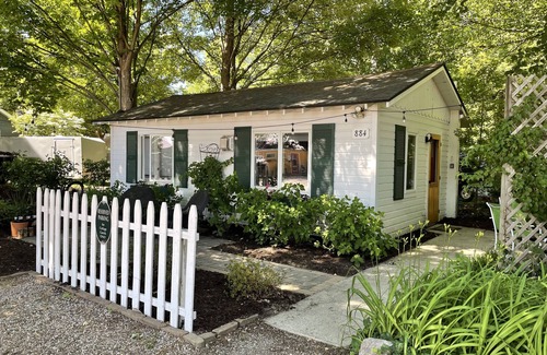 Adorable pet-friendly cottage within walking distance to downtown Saugatuck and all it has to offer. Main room offers a gas fireplace, TV and full kitchen with a pull-out loveseat and space to dine. Queen bed in bedroom, ensuite bath with shower and laundry room. A/C, ceiling fans & shady location. Private parking and outdoor garden area. Perfect stay for a couple + 1. Be sure to take advantage of the popular restaurant The Southerner right next door. The restaurant can be quite busy in the summer so there's fantastic people watching from your private patio but it ends service at 10pm so no late night noise or commotion.