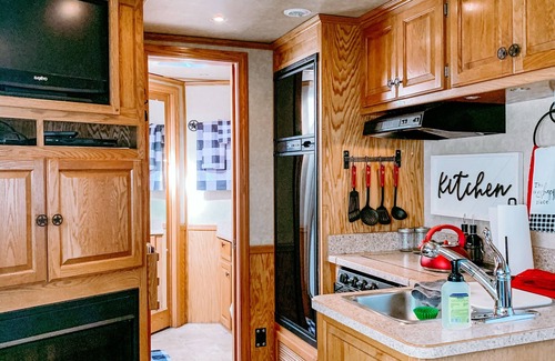- This cozy farm stay sits directly in our barnyard facing our alpaca and goat pen. You’ll see beautiful views of our working horse barn and hobby farm animals. Our petting zoo is open 24/7 and we will provide feed for you to hand feed our goats, alpaca, and sheep as you please. We have an outdoor fire pit, chairs and picnic table in our community area. The LQ trailer is 40 feet long in total and provides 17 feet of living space with a full size bathroom and full size shower.