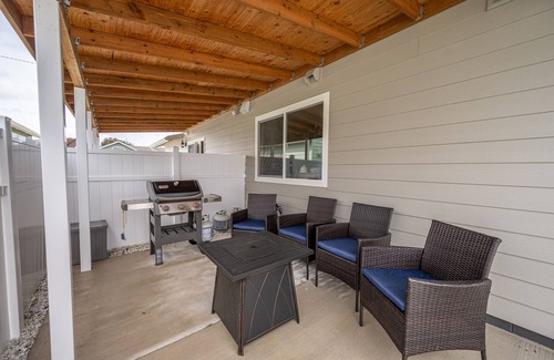 We are located up town in Reedsport, OR, a couple blocks off of hwy 101 and just 5 minutes from Winchester Bay. The spacious bedrooms, fully stocked kitchen, and covered patio will make you feel at home. There is a full dining area with a large table for gathering. The gas grill and fire pit on the patio are a huge hit to relax after a long day.
