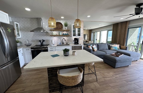 โThe Salty Shackโ features an open floor plan with the fully renovated kitchen and family room overlooking the gulf. There is plenty of space for everyone to be able to gather together.