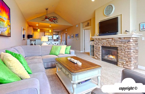 THE SANDBOX at Seaside Beach: Welcome to The Sandbox, a spacious 1240 sq ft riverfront condominium in a gated community. The Sandbox sleeps six and has impressive views of the Necanicum River. We are on the fourth/top floor with access via elevator or stairs. Once here, you can park your car as we are a 12-minute walk to downtown restaurants and shops as well as an easy 6-minute walk to the beach or 6-minute walk to the outlet stores. Open the windows at night, and you can hear the soothing sounds of the ocean. The living room is comfortably furnished with a vaulted ceiling, large windows for watching the birds on the river, a stone gas fireplace, a flat-screen TV, Wi-Fi, DVD player, and a sectional couch with a queen sleeper bed. The dining table accommodates six people with three bar stools at the separate granite breakfast bar. You will enjoy a fully stocked kitchen with modern cabinets, granite countertops, and stainless steel appliances. Amenities include spices, crock pot, rice cooker, George Foreman grill/griddle Books, and a drip coffee maker and a kuerig. The pantry is fully stocked with many board games and movies for all ages. The master bedroom has a King size bed with sliders to the balcony overlooking the peaceful majestic river. The master bathroom has a bathtub/shower combination with a jetted tub, granite countertop, and double sinks. The second bedroom has a pillow-top queen bed with the second bathroom just off the hall with a bathtub/shower combination. The laundry room has full-size washer and dryer.