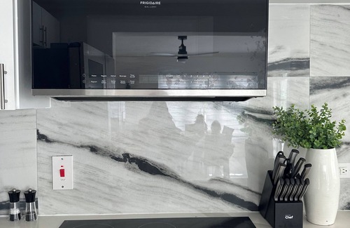 Enjoy cooking while looking at the ocean in our fully equipped kitchen with brand new state of the art appliances. Features marble counter tops with dimmable under/top cabinet lighting. Dining table awaits seating 6 and perfectly situated to enjoy the 270 degree ocean panoramic view! If you prefer you can grill or cook outside with a 5 Burner BBQ.