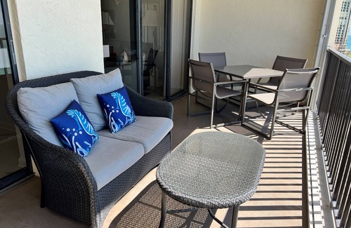 Sea Winds is located right next door to popular Sunset Grille at the Apollo. Sunset Grille is the only beachfront restaurant/tiki bar on the beach other than the hotels. Just a few blocks north of here are the popular restaurants and shops of Mission Plaza. This is the ideal spot to come and stay so book that trip today!