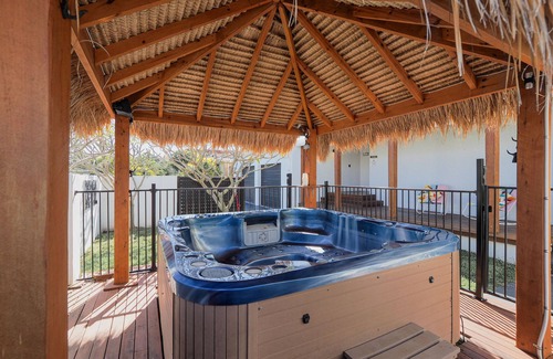 Entertainment awaits in the garage, where arcade games promise hours of fun for both kids and adults. This family- and pet-friendly retreat makes sure no one gets left behind on your beachside adventure.