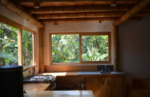 Gorgeous 2 bedroom eco-home equipped with a full kitchen, indoor/outdoor dining areas, cozy living space, stunning bamboo bathroom and private gardens. The Violeta Cottage is surrounded by strawberries, medicinal plants and fern-filled shade gardens and features a unique, antique outdoor bathtub. Upstairs, two double bedrooms are filled with light and peaceful tropical garden views. Guests have access to a natural pool and Mayan sauna on-site. 10 minute walk from the shores of Lake Atitlan.