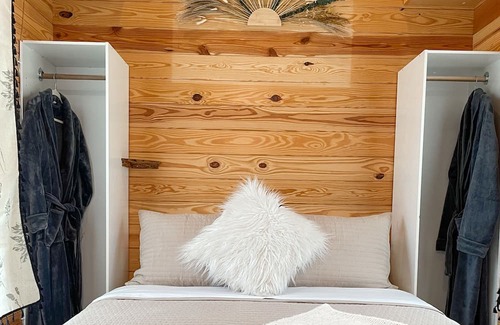 Modern tiny cabin designed to maximize your relaxation + self-care in nature. It's a cozy, woodsy getaway on 3+ acres for those looking to treat themselves to a serene and secluded tiny house experience.
