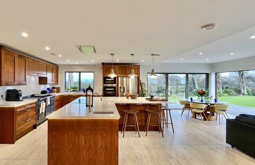 - Kitchen facilities: electric double Aga with 4 ovens and 2 large hotplates (boiling/simmering), additional single electric fan oven with grill, 6 zone induction hob, American fridge-freezer with ice and water, dishwasher (plus additional dishwasher in boot room), microwave, Quooker boiling tap, Nespresso coffee machine (standard pods), kettle, toaster, cafetière. Additional American fridge-freezer in the summerhouse.
