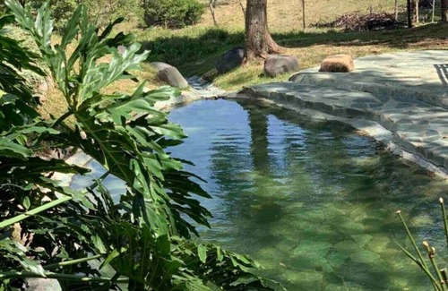 The pool is 100% water of birth and natural stone. We love to let nature flow, that is why we do not use any chemical to treat water !!