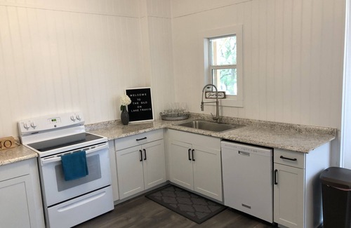 Welcome to The Silo On Lake Travis. Our farmhouse style 7 bedroom, 3 large bathroom home is a dream vacation spot. This brand new custom home is steps from the beautiful Lake Travis in Austin, Texas. We have a custom pool and massive hot tub (16 people). The top floor of this property consists of beautiful lake views, a silo bar, 3 large bedrooms, 2 beautiful bathrooms, large communal space for eating, and a Chef’s dream kitchen. The master suite has a king size bed and gorgeous tree top views with a dream bathroom with double shower heads. The two additional bedrooms share a jack and jill bathroom. The kitchen consists of gorgeous Thermador commercial appliances and two dishwashers. This floor includes a large porch with lake views and an egg smoker for cooking.