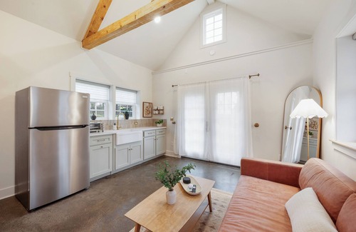 The Sleepy Fox Cottage has a unique story—once a workshop, now renovated into a mother-in-law suite after a black walnut tree fell through it. Now, this warm and cozy cottage blends charming character with modern touches for the perfect getaway. Located in the heart of town, The SFC puts everything you need within walking distance—grocery store, restaurants, a park, and more. We hope you'll consider being a part of the story!